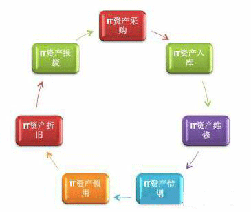 将IT设备资产生命期分为:采购、入库、划拨、领用、借调、上线、维保、升级变更、下线、报废、盘点、统计;