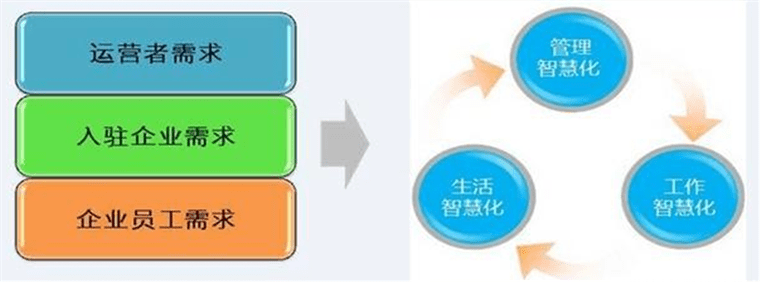在智慧园区建设的过程中,要满足不同人群的需求。从运营者的角度出发,需要高效智能的管理、绿色节能的设施;从企业的角度看,其长远发展更是需要各类企业服务资源,如工商注册、财务税收、融资担保等;从员工的角度出发,良好的办公环境,以及完善的生活服务是首要需求。围绕企业的发展要求和人才的精神需要,建设智慧型园区,必须协调政府、企业等各方资源,实现管理、工作、生活智慧化,三位一体打造智慧园区。
