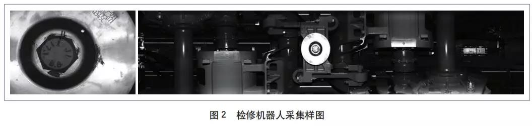 车底定位模块分为面阵相机和线扫相机 2 部分,面阵相机用于定位车底设备,线扫相机用于采集车底设备图像。此外,还应用轮轴编码器确保采集的车底图像稳定、不发生抖动。以图 2 为 例,通过使用相机对车底设备进行高清拍摄,实现对设备异常形态、设备异常变化的智能监测,从而快速识别故障点,确定故障位置及故障等级,给出故障判断,引导人员使用与设备相对应的检修标准、工器具进行维修,最终实现故障的快速诊断和准确报警,提高检修效率。