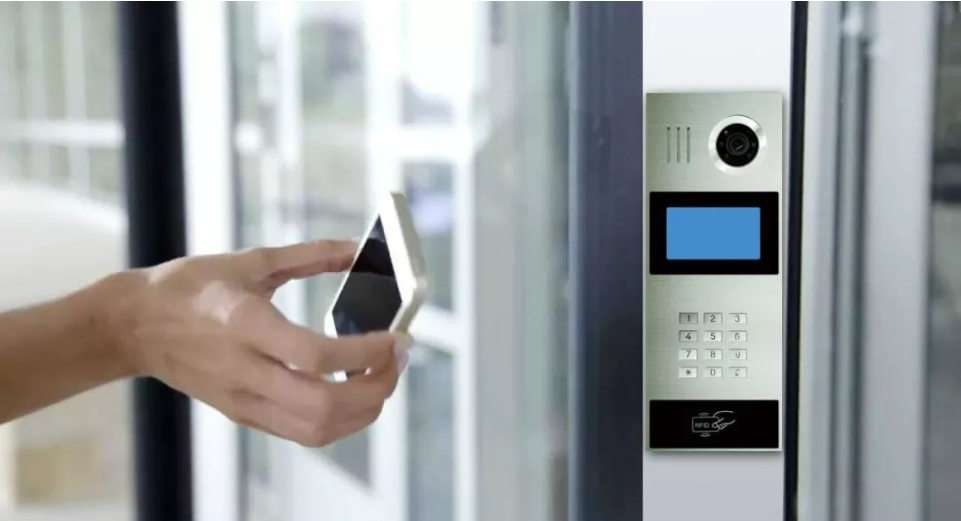 门禁系统:主要以感应卡式,指纹,虹膜以及面 部识别等为主,有安全、便捷和高效 的特点,能联动视频抓拍、远程开门、手机位置探测及轨迹分析等。