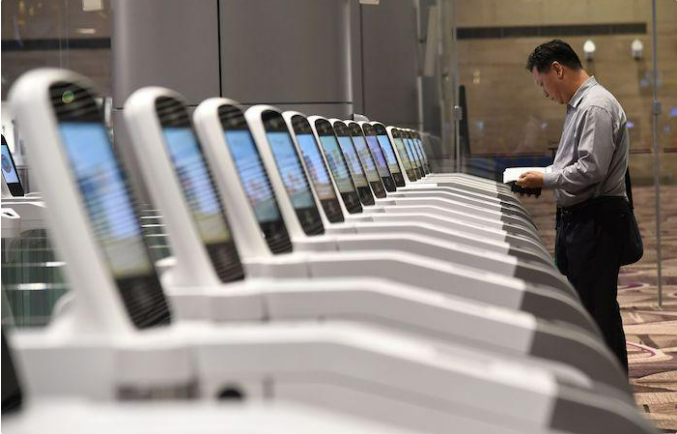 新加坡樟宜机场也早在2017年便开始尝试自助化,包括自助值机亭、自助行李托运柜机、自动通关闸门等。四号航站楼正在试验“机器人运营模式”:自动驾驶车辆会定位卸载行李,旅客在传送带上提取完机器人传送的行李后,便可以搭乘无人驾驶出租车离开;在走向登机口时或许还能遇见“穿着”代表不同种族贴纸的扫地机器人。