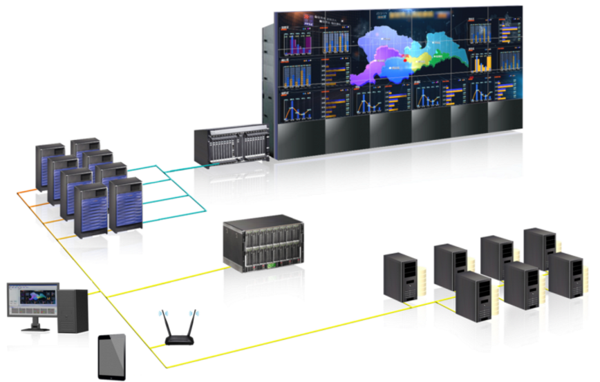 3D机房监控展示最核心的运营指标数据(如4G 用户数、宽带用户数、营业收入等)、客户感知指标(如实时主厅坐席数、流畅、缓慢、卡顿和中断数等)。实时刷新, 并 及时反馈业务运营指标的变化以及前台营业厅的流畅、缓慢、卡顿和中断数等状态。支持与历史指标数据的实时同比,及时发现异动。