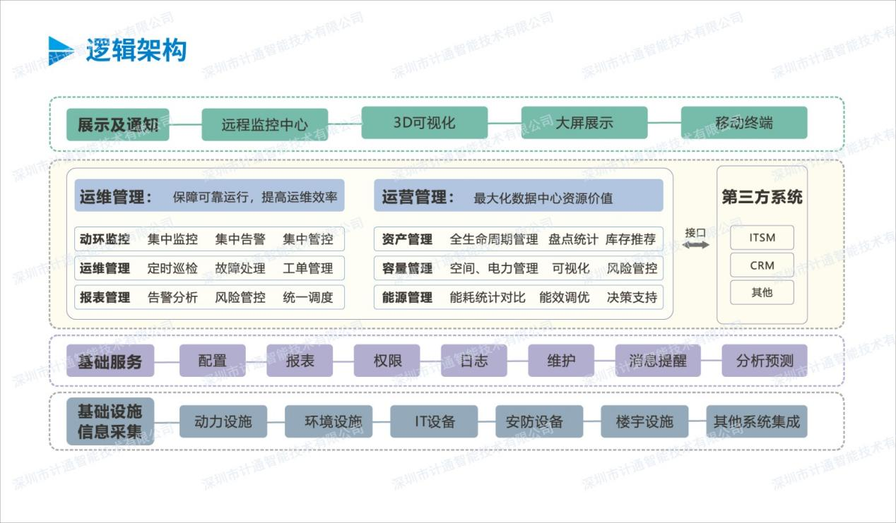 计通智能专注数据中心智能、集中监控,聚焦数据中心全生命周期资源高效利用。致力于动力、环境、安消防等全面、智能监控保障数据安全。从为运维人员、运维商减负、为数据中心赋能等多维度入手,推动数据中心可持续性发展,助力实现数据中心价值最大化。