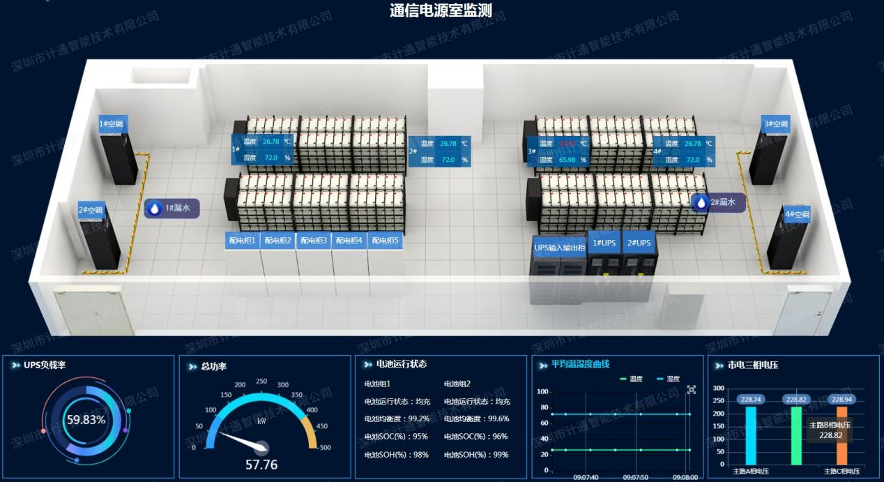 针对线网站点机房数量多、分布广等运维现状,利用物联网、人工智能、大数据分析、数字孪生、地理信息等技术实现对线网各站点机房的配电、环境、动力、安防等进行集中监控、智能分析、高效运维等综合管理。