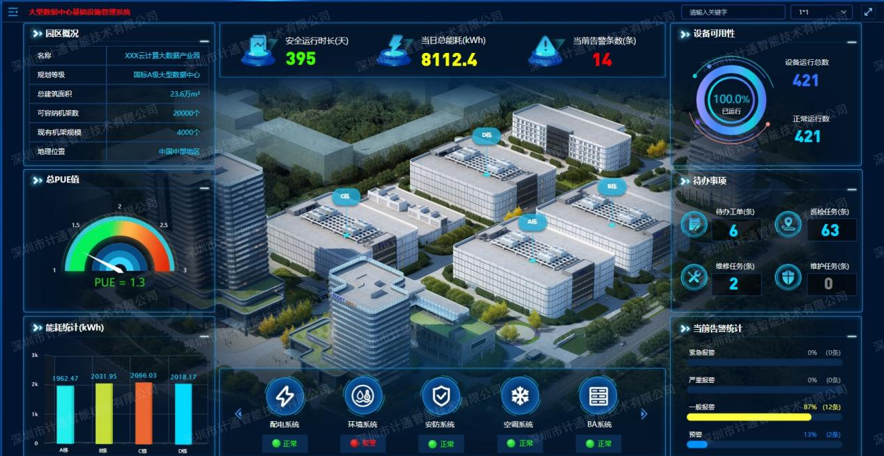 为中心机房的基础设施,打造集中、统一的智能监控数字化管理平台。该平台集成动环监控、资产管理、安防、能源、IT、BA等各专业系统及综合运维系统,实现对中心机房集中、统一、实时全面运行掌控和统一的综合运维管理。