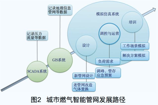 管网仿真技术。现阶段大部分燃气公司都能够通过GIS系统、SCADA系统,实现对管网信息查询及管网状态的实时监控,并能够通过SCADA系统实现远程开关阀门。随着智慧燃气的发展,采用管网仿真系统、SCADA系统、GIS系统等相结合的方式,更能够实现管网管理的智慧化。