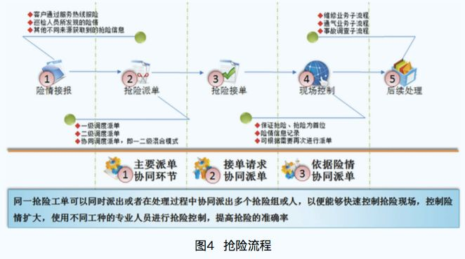 如何构建多元的险情来源体系?如何确保信息传递的准确性?如何确保抢险过程的合规高效可靠?这是智慧抢险所面临的问题。为解决上述问题,有必要建设智慧化的抢险维修系统,实现对整个抢险维修工作的智能管理。图4是抢险流程说明。