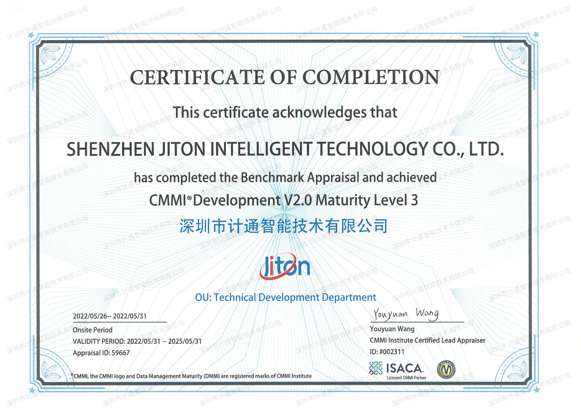 深圳市计通智能技术有限公司研发部成功通过CMMI3级认证,公司的软件研发能力、服务交付质量等方面均获得国际权威认可。